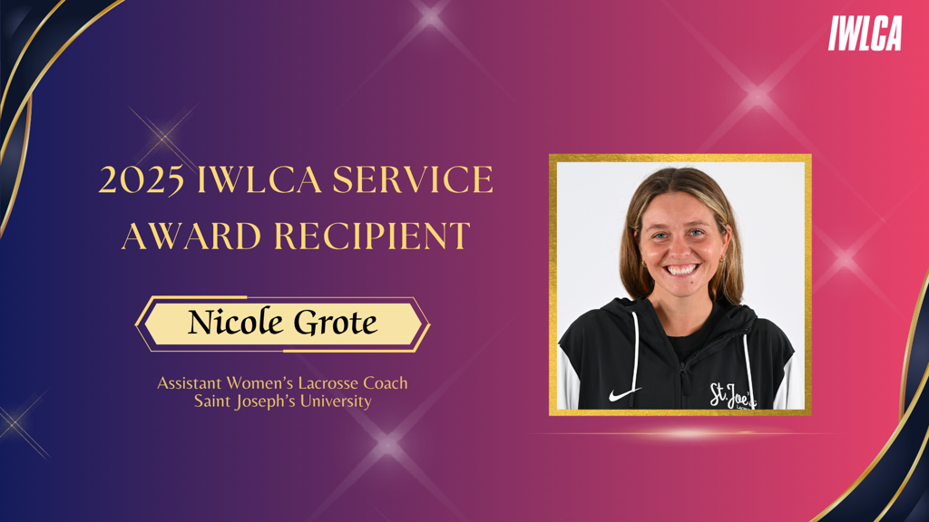 The IWLCA is pleased to announce that Nicole Grote, Assistant Women’s Lacrosse Coach at the Saint Joseph’s University, has been named the recipient of the 2025 IWLCA Service Award.