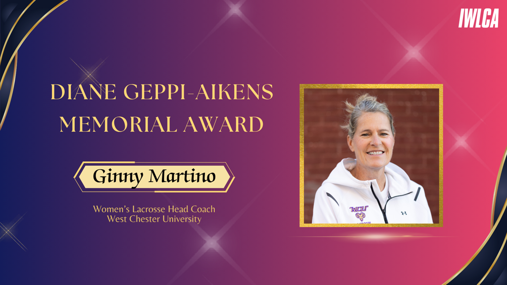 The Intercollegiate Women’s Lacrosse Coaches Association (IWLCA) is proud to announce that West Chester University Head Coach Ginny Martino has been selected as the 2025 recipient of the Diane Geppi-Aikens Memorial Award. Martino will be honored during the IWLCA Honors Dinner and Hall of Fame Induction Ceremony on November 20, 2025, at the Tradewinds Resort in St. Petersburg, Florida.